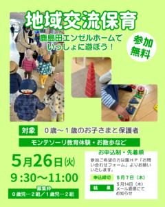 ★地域交流保育を開催いたします★お申込制・先着順です★ ↑画像クリックで大きな画面になります 《保育士求人 正社員・パート共に大募集!》 |